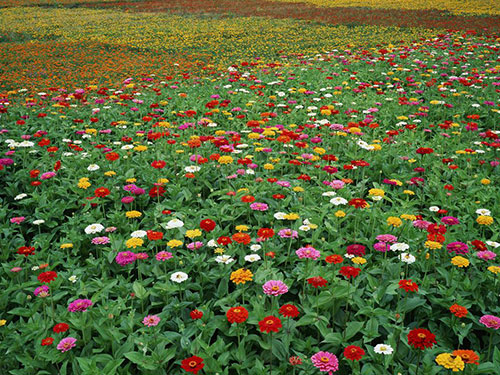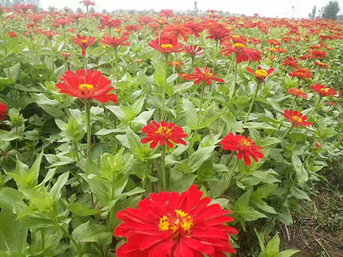 百日草,一年生草本植物。側(cè)枝呈杈狀分枝。夏秋開花,頭狀花序單生枝頂,花徑約10厘米,花瓣顏色多樣,花期長,花型變化多端,基本上都是重瓣種。
